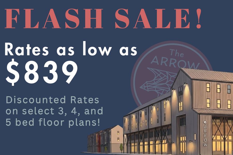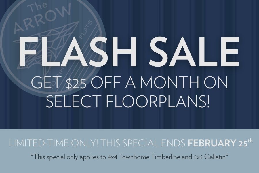 Everything at The Arrow is designed to make your student life in Bozeman the best it can be. Our flats and townhomes are just steps away from Montana State University and centrally located to all Bozeman, MT has to offer. With free WiFi, outdoor gathering places, and a sporting repair shop, The Arrow is your ultimate basecamp for every outdoor adventure.