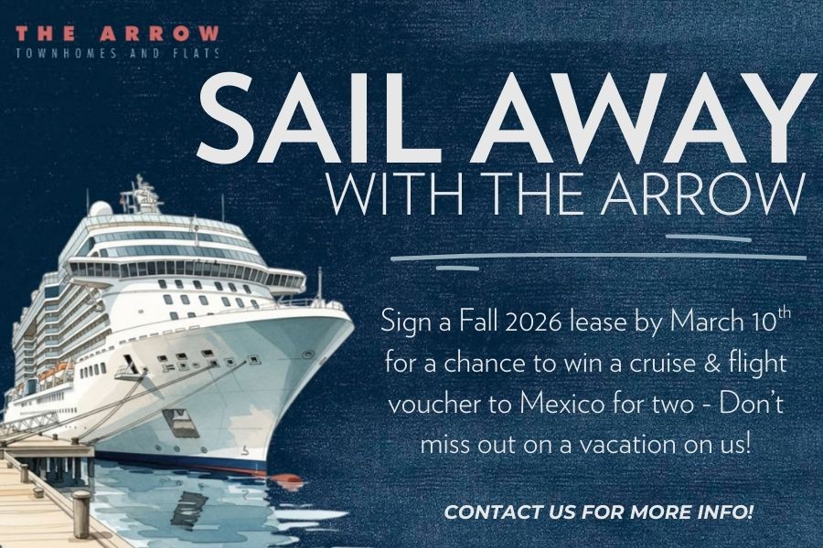 We offer one-, two-, and three-bedroom flats and four- and five-bedroom townhomes. Plus, every bedroom comes with your own private bathroom. From your home down to every amenity, The Arrow provides stylish design and modern conveniences, so you can live life on point.